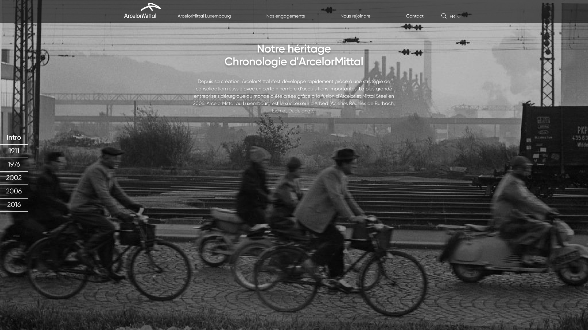 Nous avons ensuite pitché la proposition dans les nouveaux locaux d’ArcelorMittal Luxembourg, avec un focus fort sur un onglet « Historique » éditorial/animé permettant de dynamiser la charte et renforcer le récit de marque.