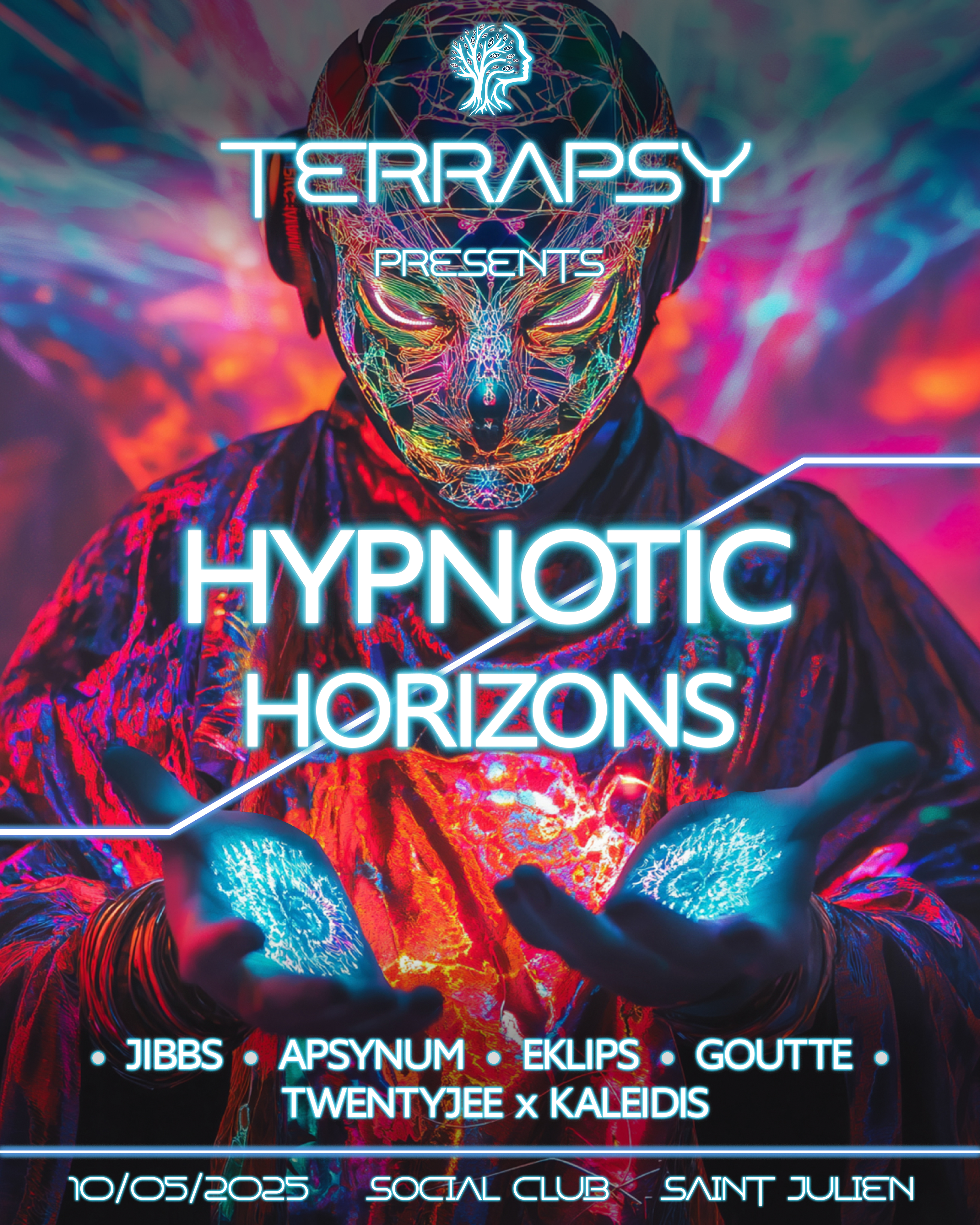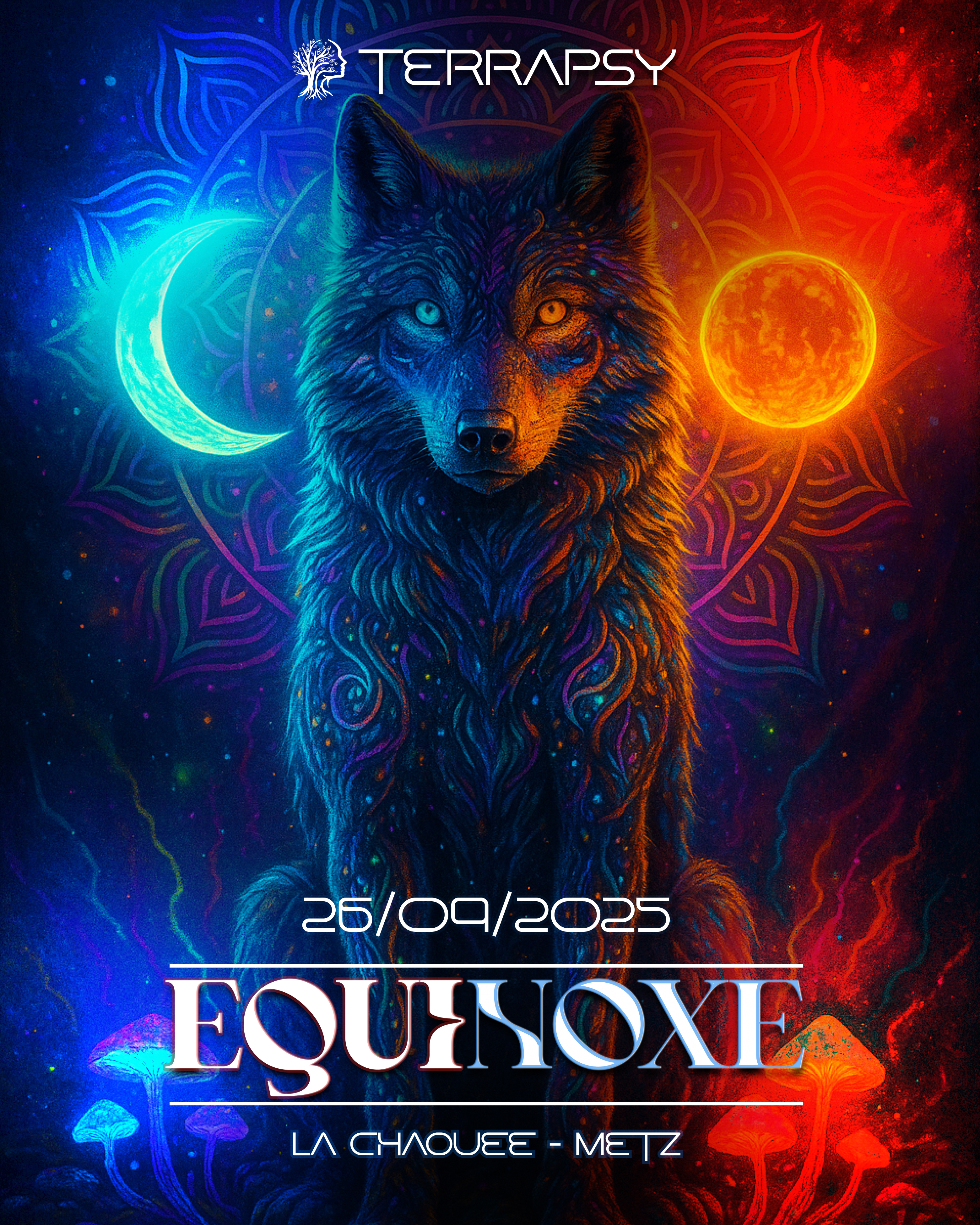 Terrapsy est une association messine dédiée à la culture psytrance. Mon rôle de directeur artistique consiste à aligner les affiches, la communication visuelle et des éléments de scénographie pour traduire l’ADN du collectif : bienveillance, nature et énergie tribale. Les événements se déroulent notamment à La Chaouée et au Social Club.